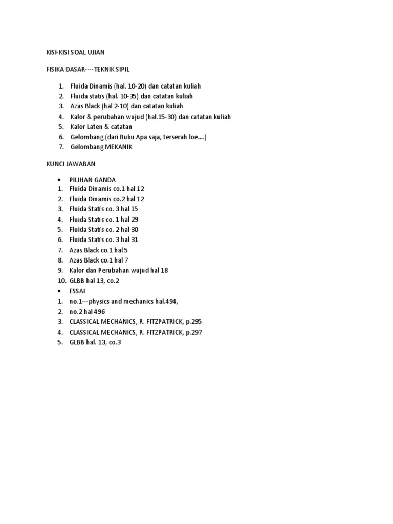 Kisi Kisi Uas Fisika Dasar I Teknik Sipil