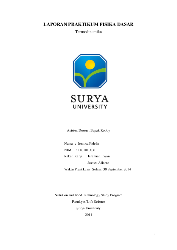 Laporan Fisika Dasar Termodinamika Jennica Fidelia Academia Edu