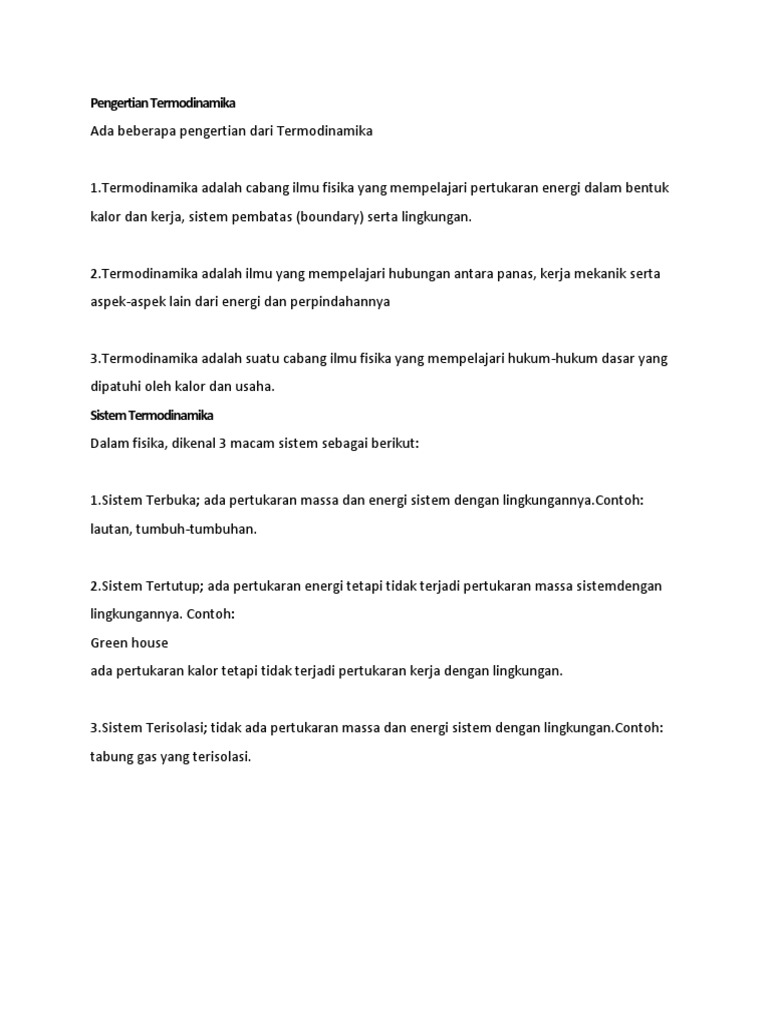 Pengertian Termodinamika Sistem Proses Dan Hukum 0 I Ii Iii