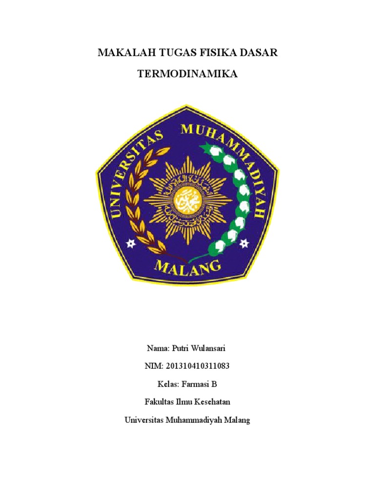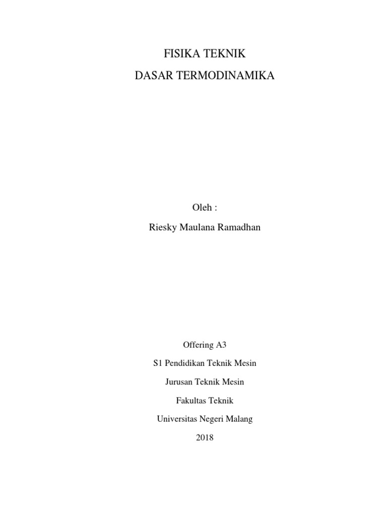 Makalah Fisika Dasar Proses Termodinamika Program Studi Teknik