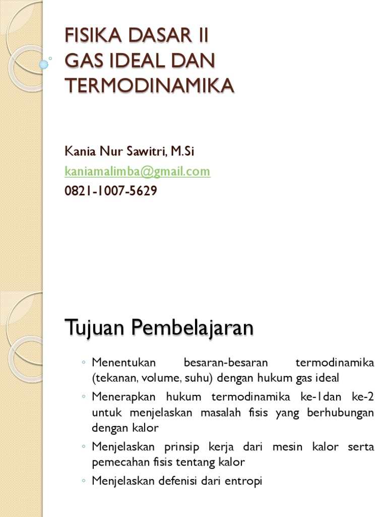 Fisika Dasar Ii Gas Ideal Dan Termodinamika Ppt Download