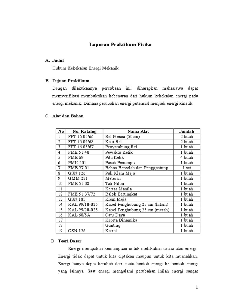 Laporan Praktikum Fisika Hukum Kekekalan Energi