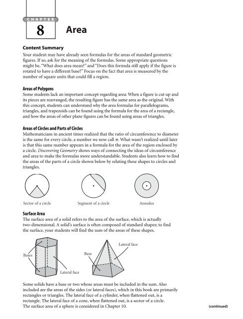 Content Summary Areas Of Polygons Areas Of Circles And Parts Of