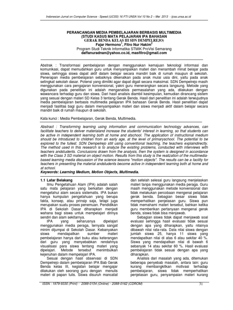 Perancangan Media Pembelajaran Berbasis Multimedia Studi Kasus Mata
