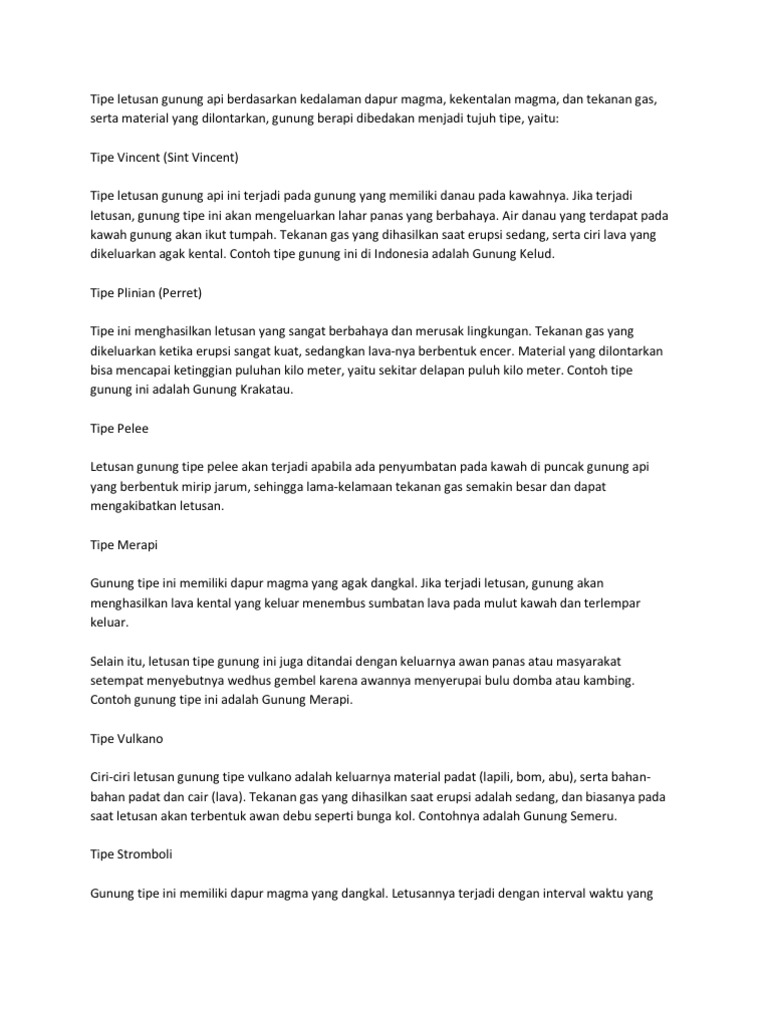 Tipe Tipe Letusan Gunung Api Docx