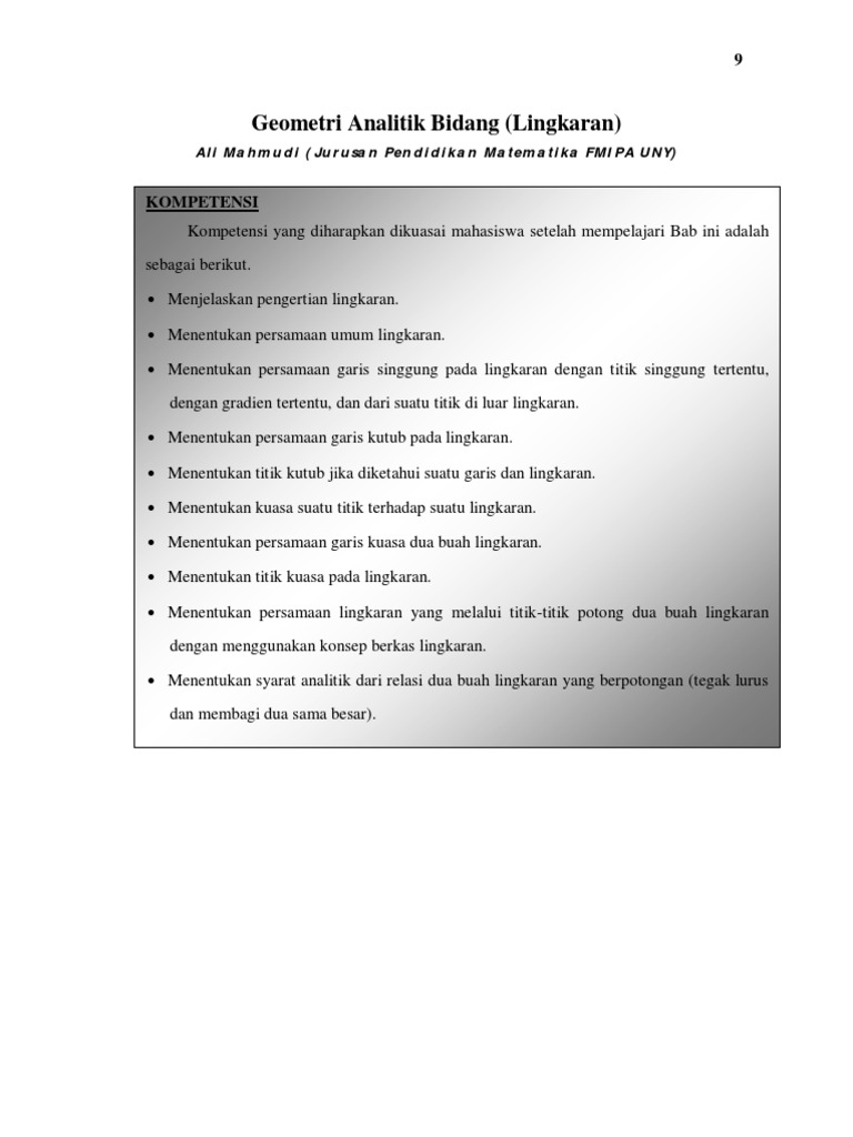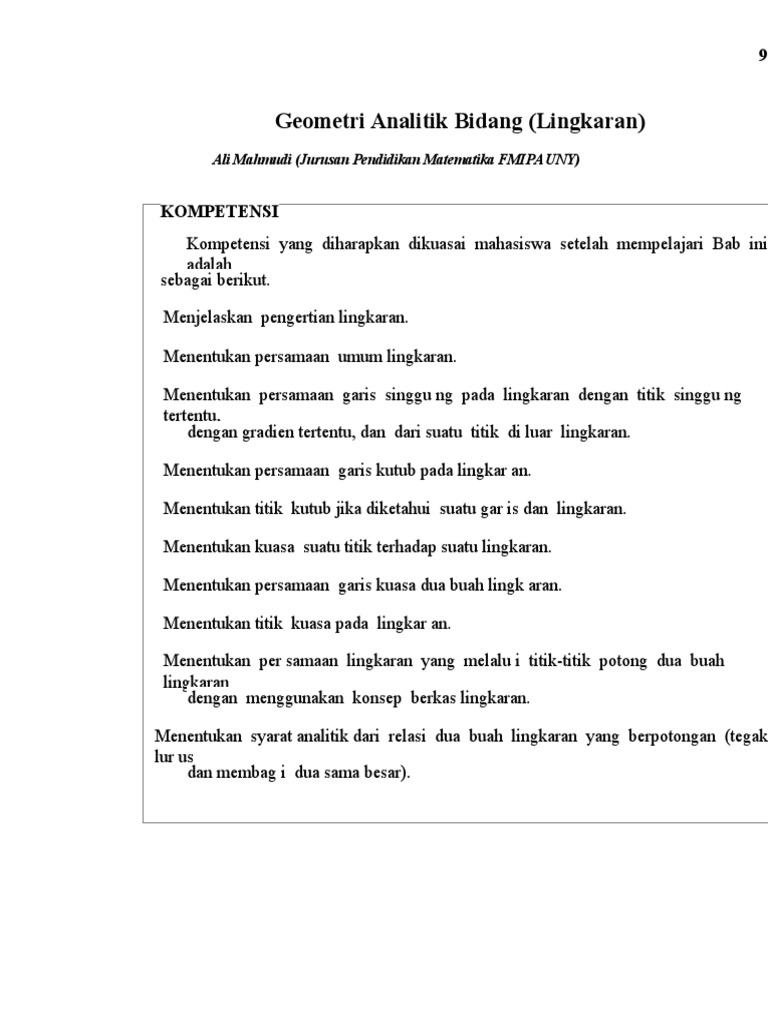 Geometri Analitik Bidang Lingkaran Uny Pdf Free Download