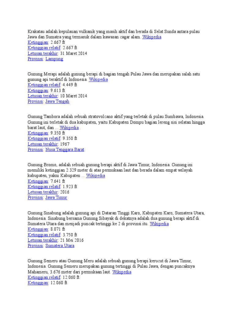 Gunung Berapi Di Indonesia Gunung Berapi Di Indonesia
