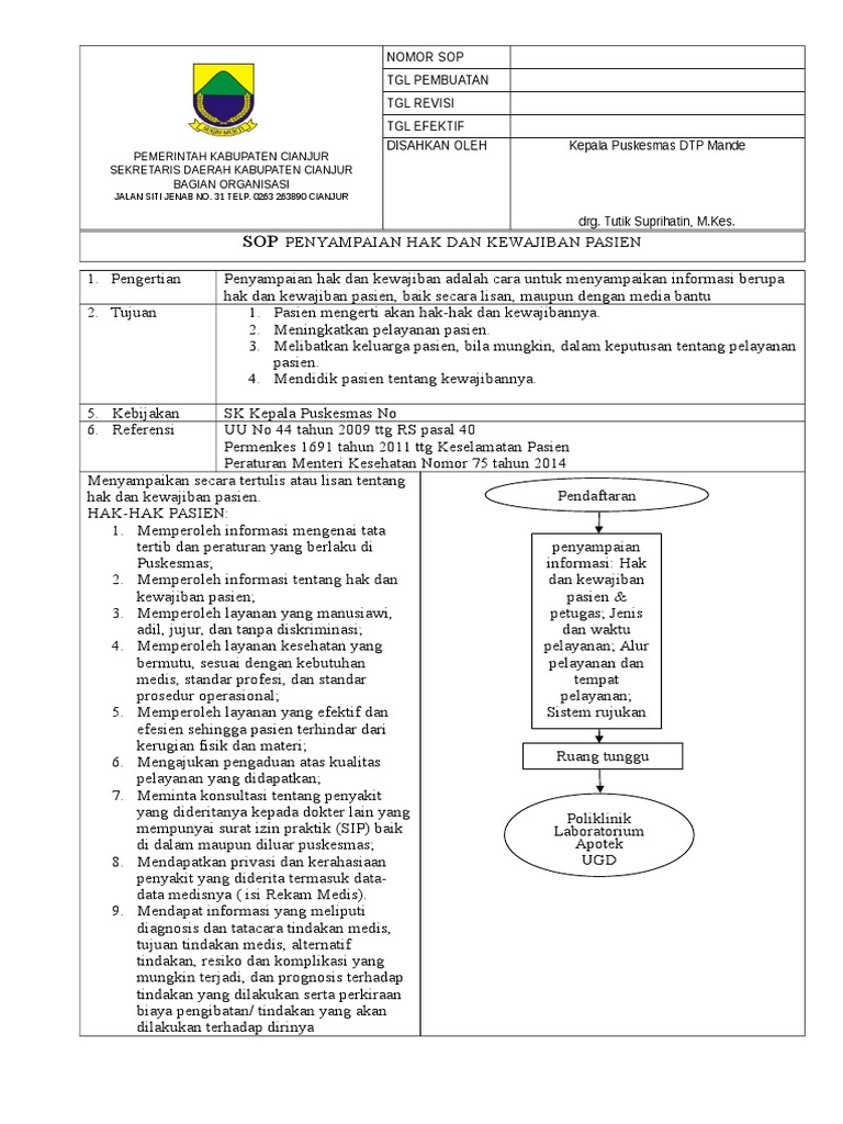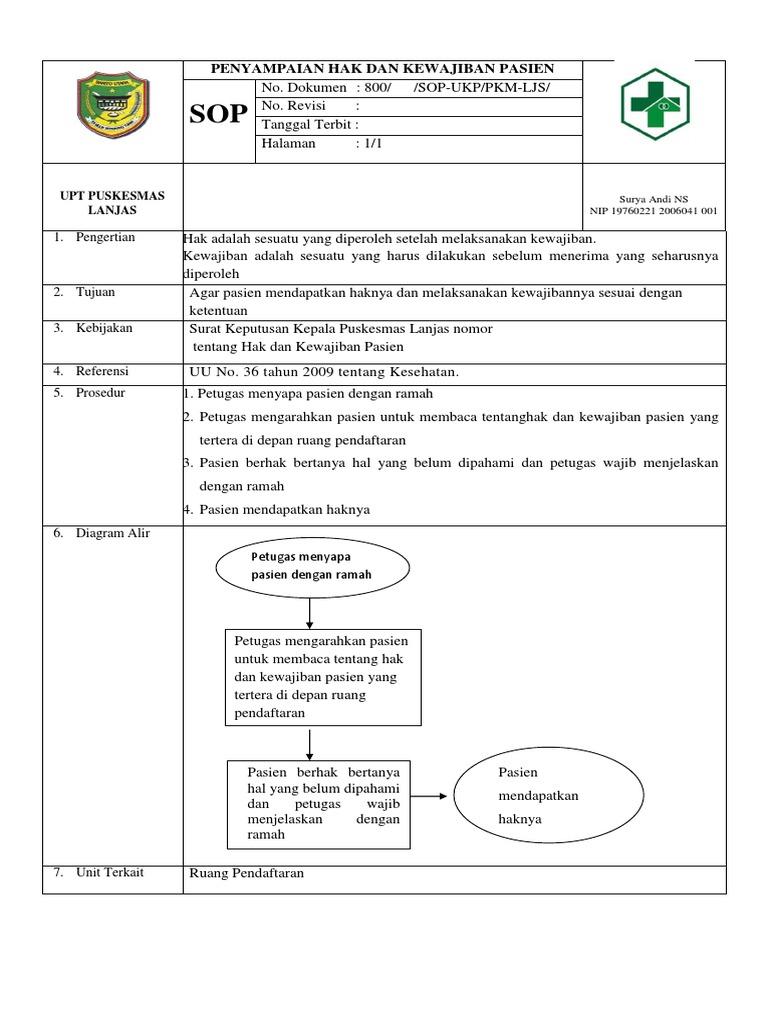 Sop Penyampaian Hak Dan Kewajiban Pasien Docx Documents