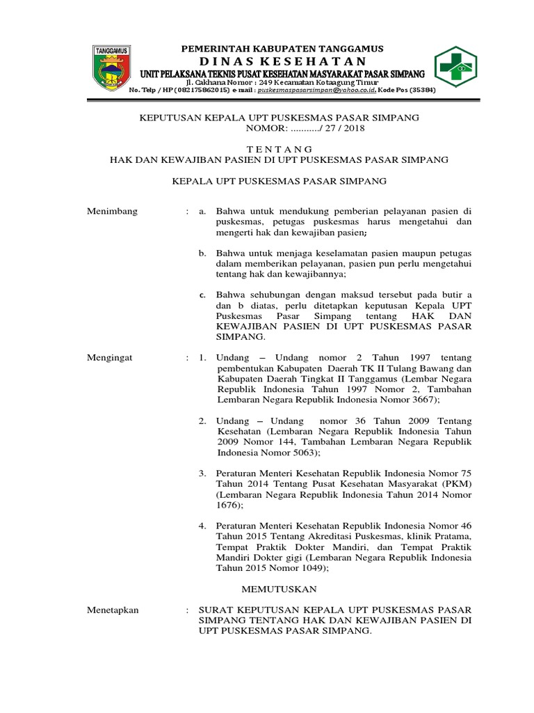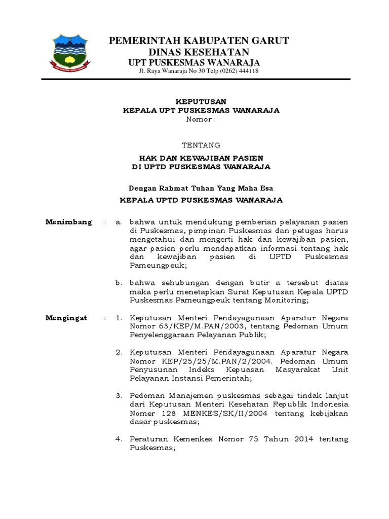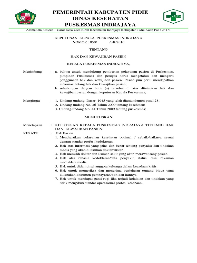 Sk Kebijakan Hak Dan Kewajiban Pasien Doc Documents