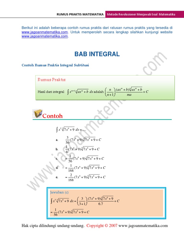 Rumus Integral Tak Tentu Dan Contoh Penyelesaian Genggam Internet