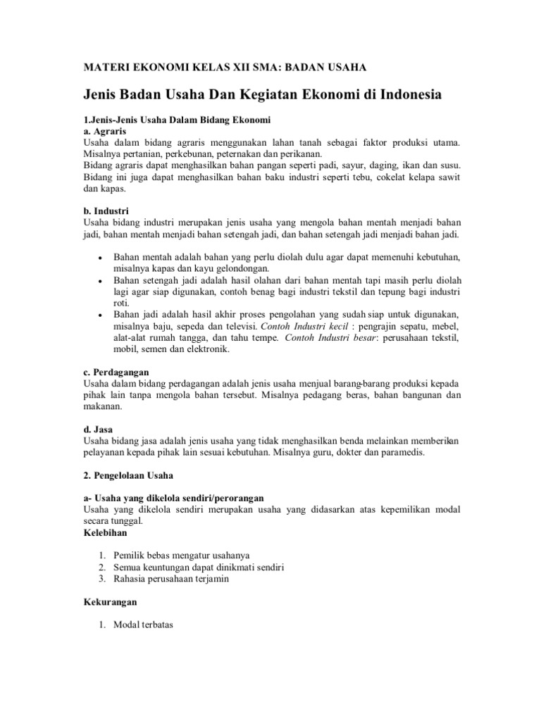 Materi Ekonomi Kelas Xii Sma Badan Usaha