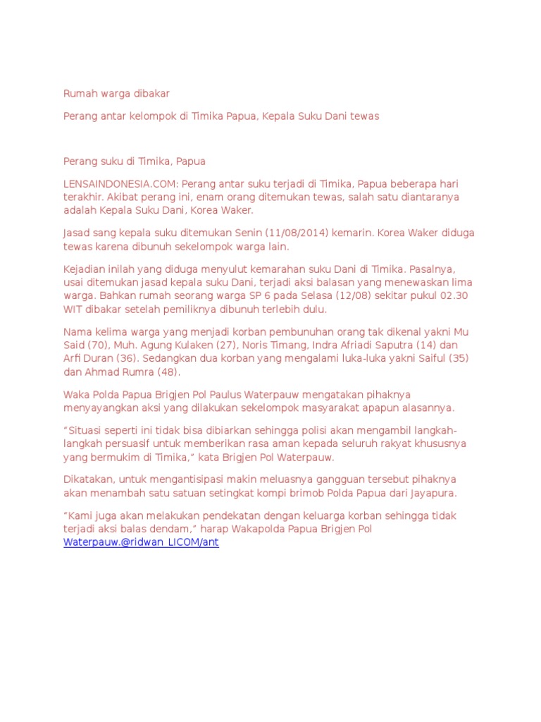 Efek Bola Salju Terbunuhnya Kepala Suku Dani Di Timika Merdeka Com