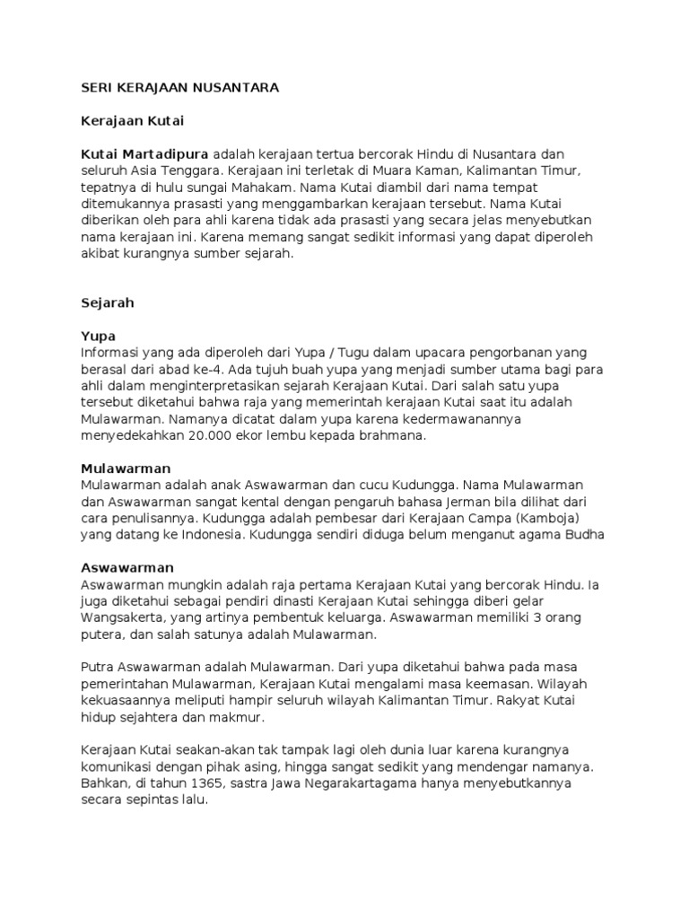 1 Kutai Adalah Kerajaan Hindu Pertama Yang Pernah Berdiri Di