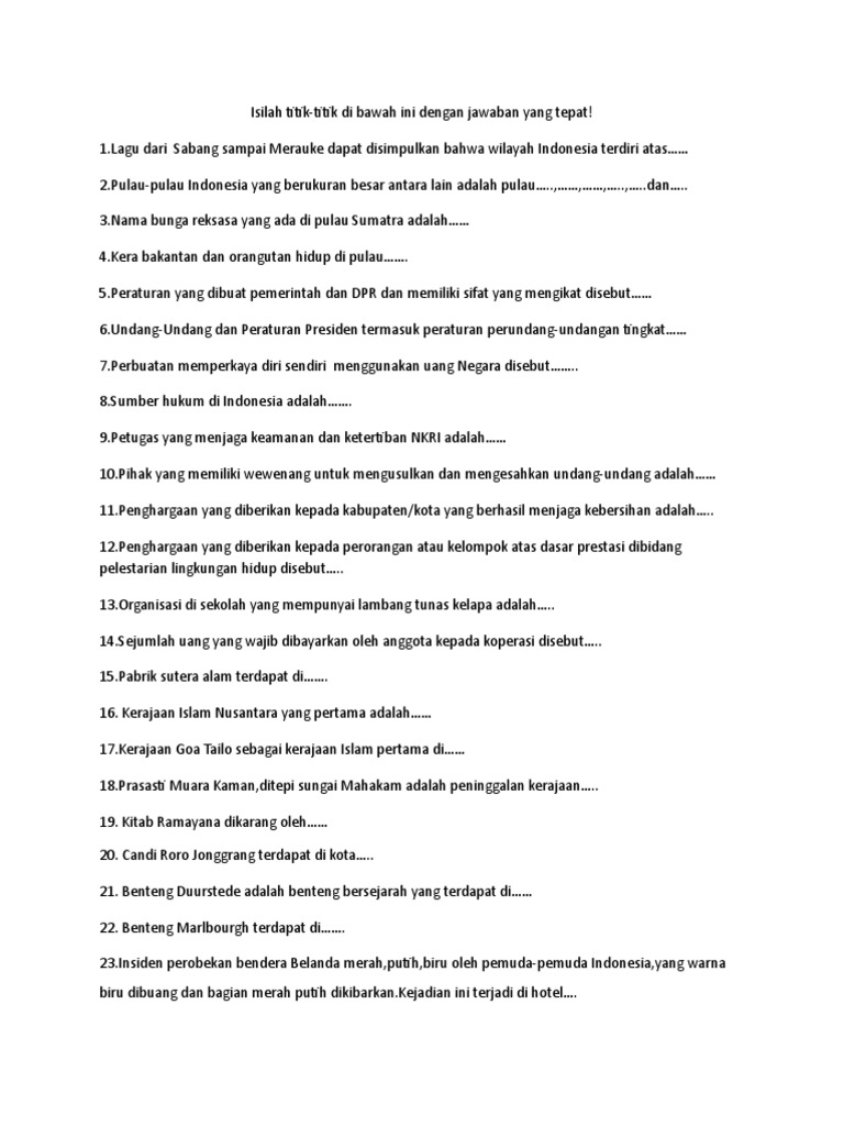 Soal Ulangan Ips Ke 1 Kelas 5 Semester 1