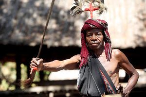 Kabupaten alor kampung. Berpose ala suku abui di desa adat takpala alor tengah utara.