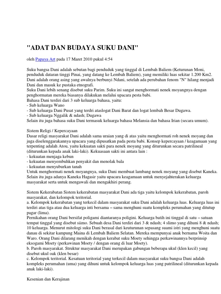Suku Dani Kebudayaan Sistem Kepercayaan Kekerabatan Politik