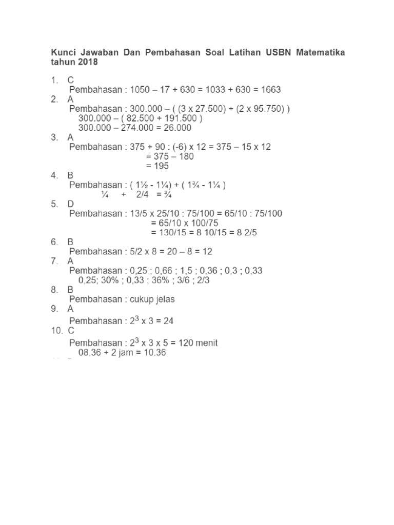 Soal Dan Jawaban Latihan Usbn Matematika Sd Tahun 2018 Pendidikan