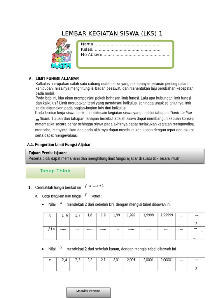 Lks Matematika 4 Limit Fungsi Aljabar Asep Adzha Academia Edu