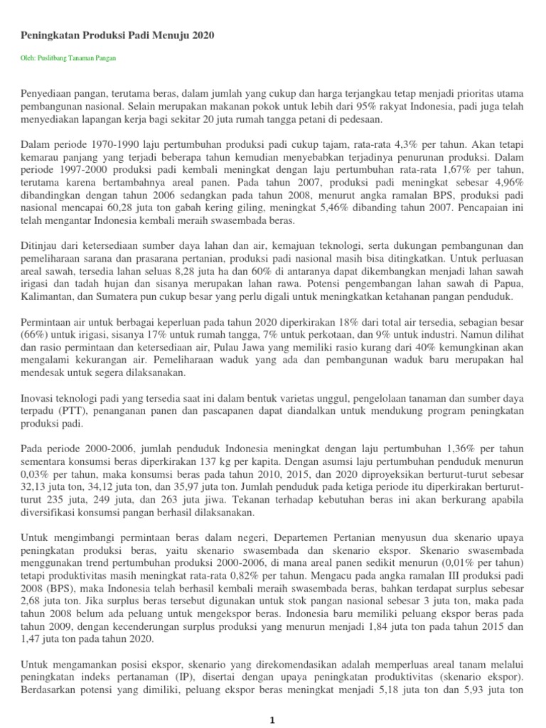 Peningkatan Produksi Padi Menuju 2020