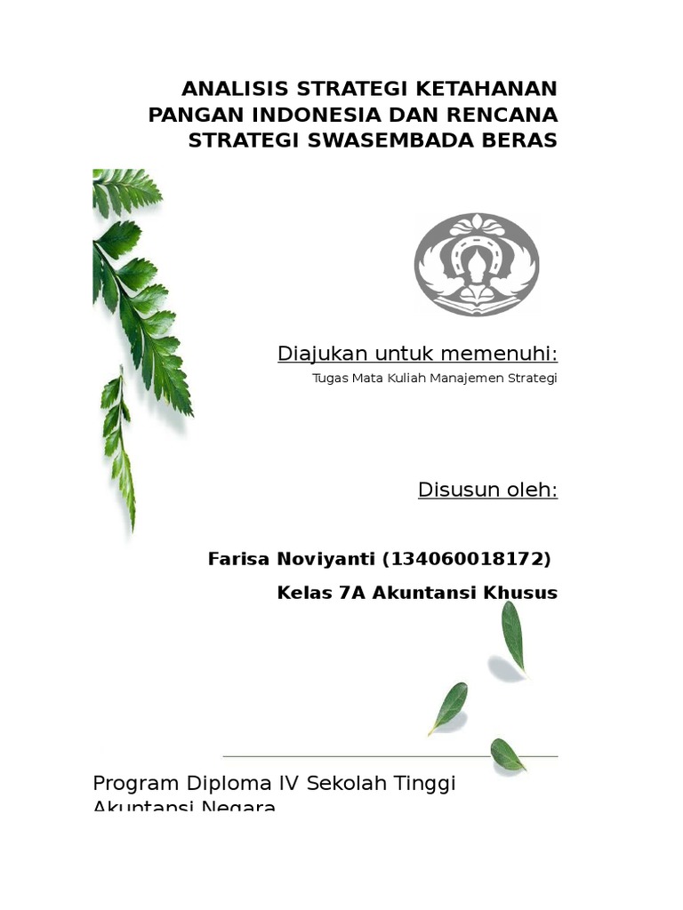 Analisis Strategi Ketahanan Pangan Indonesia Dan Rencana Strategi