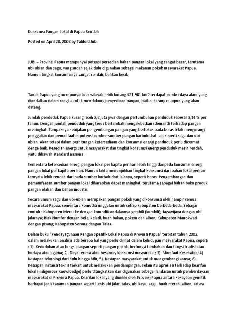 Makanan Pokok Yang Bisa Digunakan Untuk Mendukung Ketahanan Pangan Di Papua Adalah