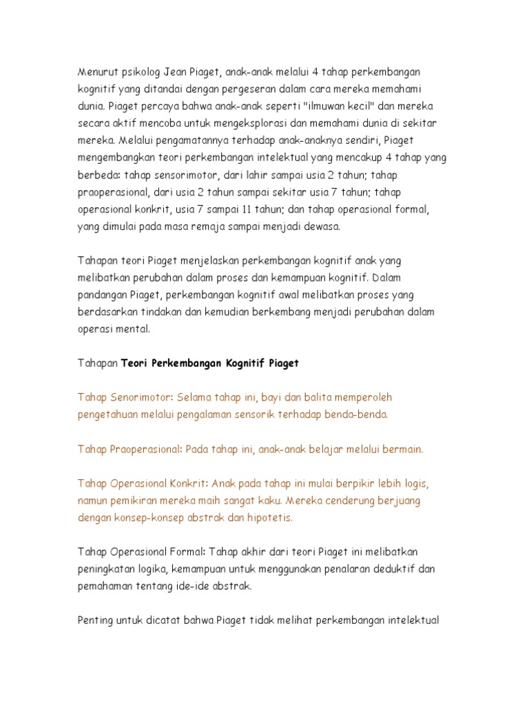 Perkembangan Kognitif Menurut Beberapa Ahli Dina Kartika