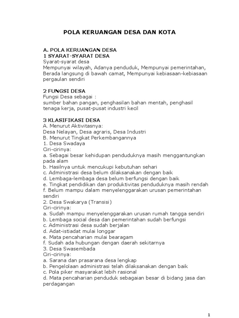 12 Pola Keruangan Desa Dan Kota