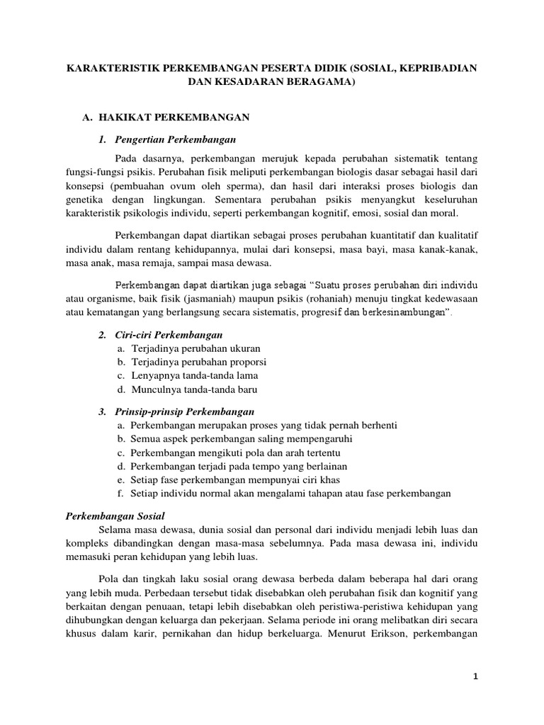 Karakteristik Perkembangan Peserta Didik Teori Pdf