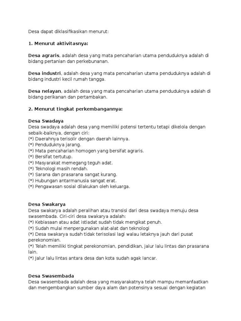Klasifikasi Desa Menurut Tingkat Perkembangannya Top Info