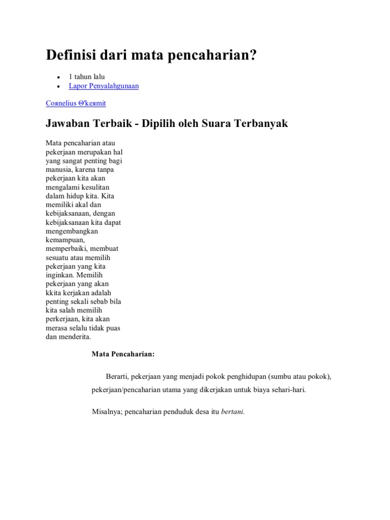 Definisi Dari Mata Pencaharian