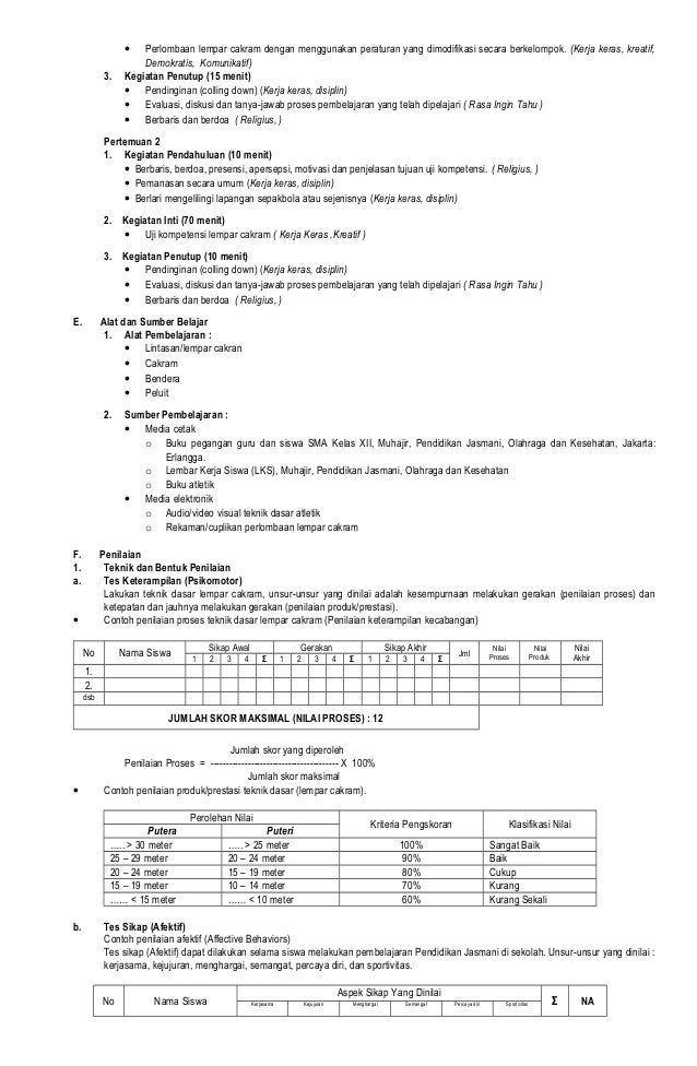 Download Perangkat Pembelajaran Dan Rpp Penjaskes Pjok Kelas Xii