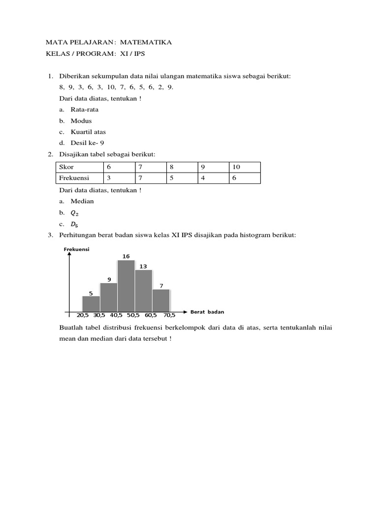Cara Membuat Data Interval M3 Median Modus Mean Dan Histogram