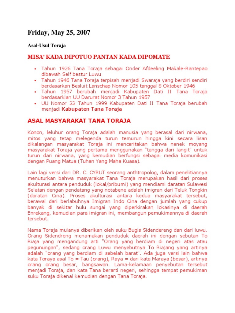 Sekilas Tentang Asal Usul Dan Budaya Toraja