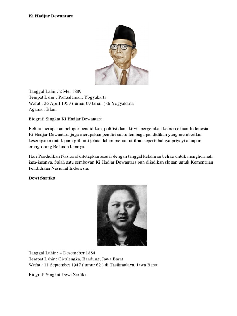 Nama Pahlawan Nasional Beserta Tanggal Lahir Dan Wafatnya
