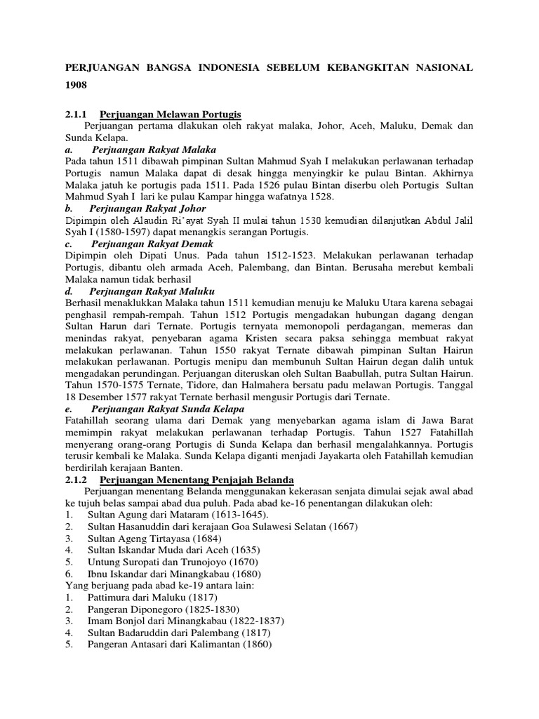 Contoh Perjuangan Bangsa Indonesia Sebelum 1908 Materi Bahan Ajar