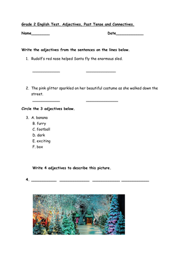 Adjectives Connectives And Past Simple Worksheet Test By Sambc