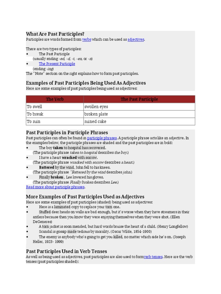 What Are Past Participles Grammatical Tense Perfect Grammar