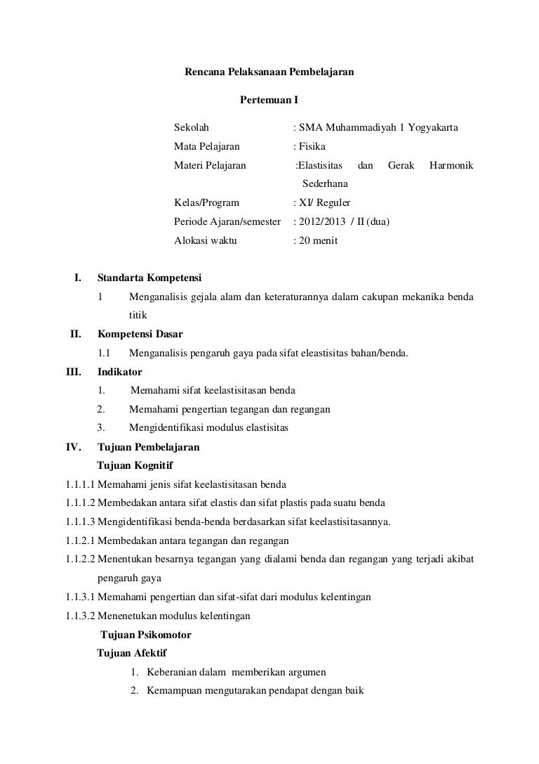 Rencana Pelaksanaan Pembelajaran Elastisitas
