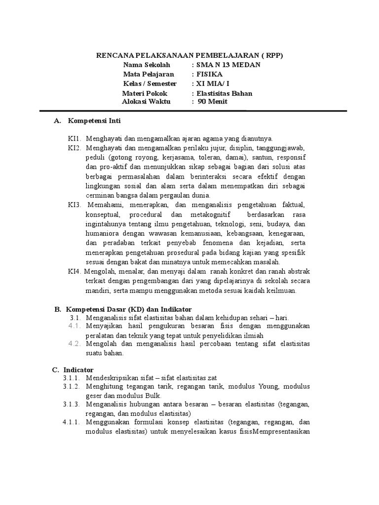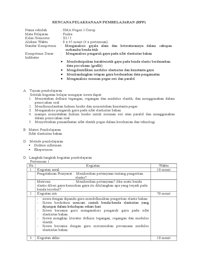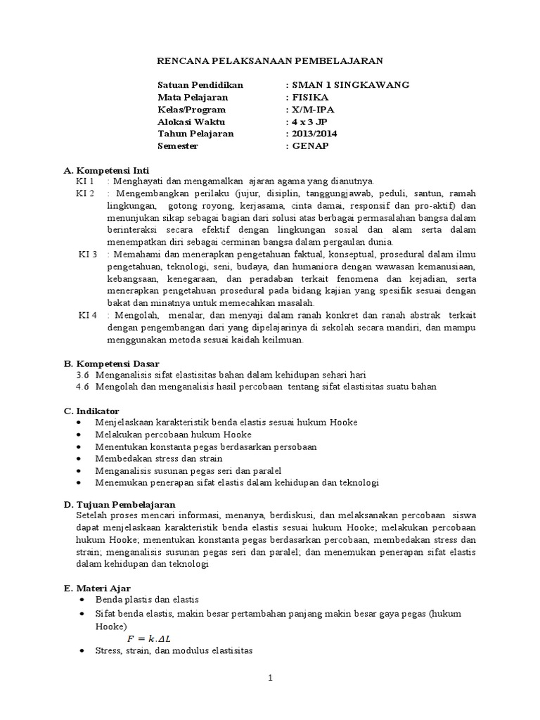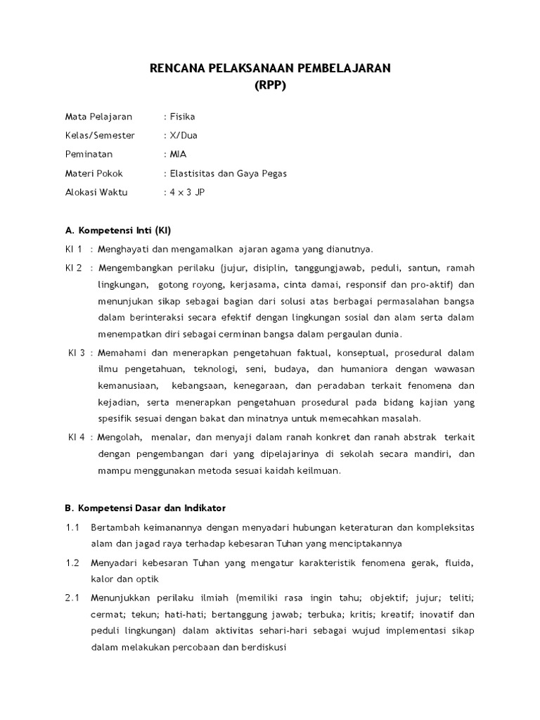 Rpp Fisika Elastisitas Dan Pegas Kurikulum 2013