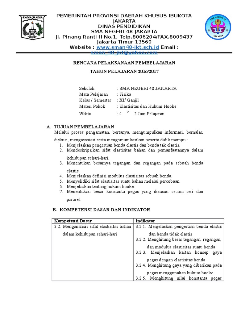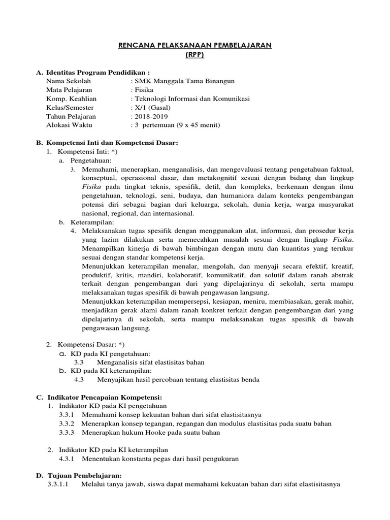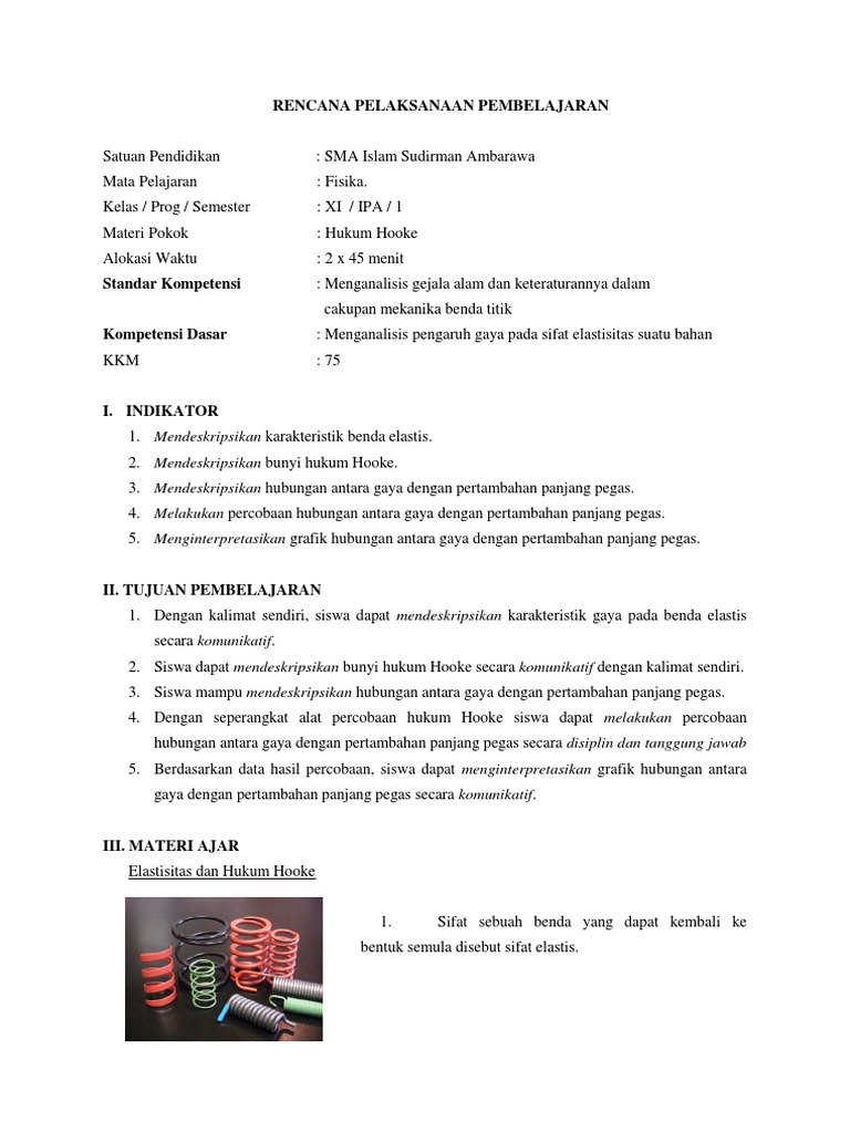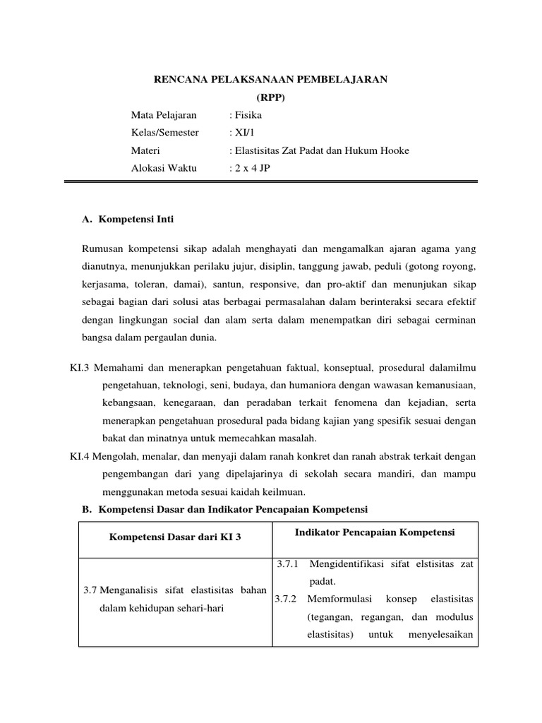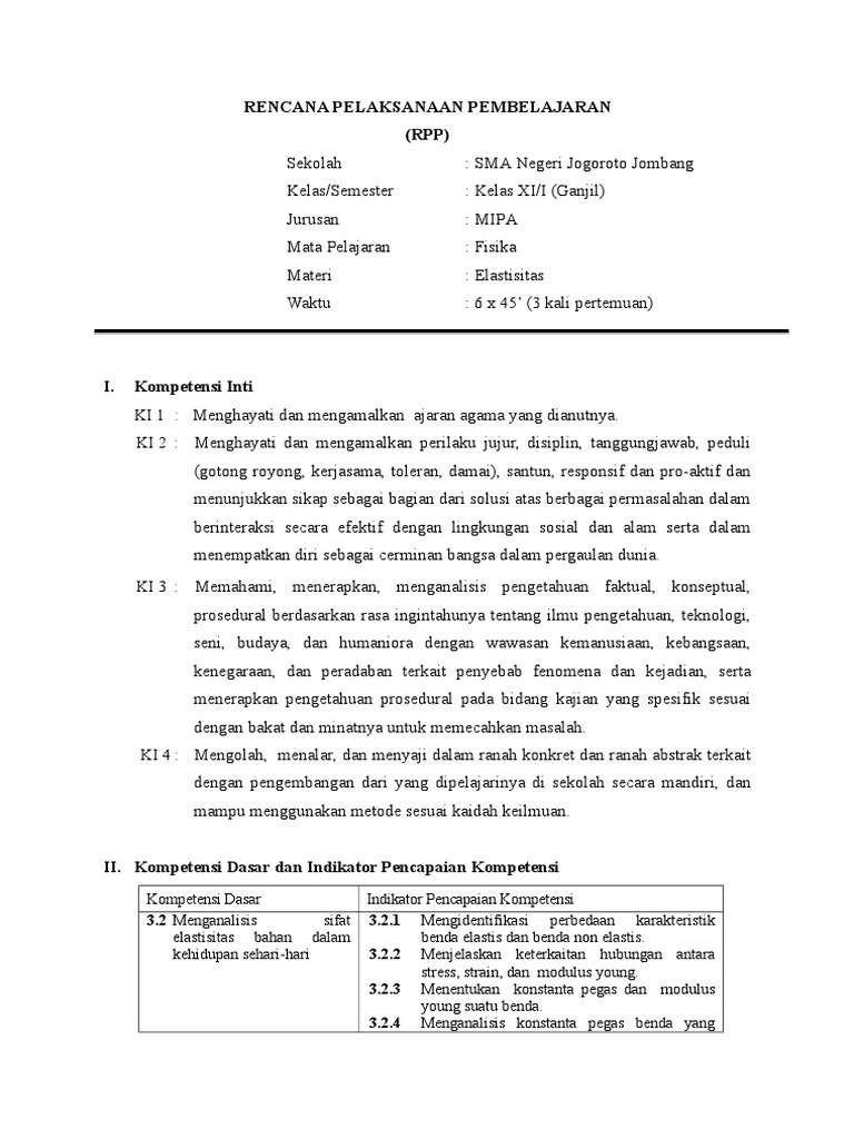 Rpp Fisika Elastisitas Dan Pegas Kurikulum 2013