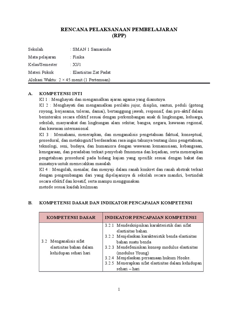 Lampiran 1 Rpp Elastisitas Rini Syamra Academia Edu