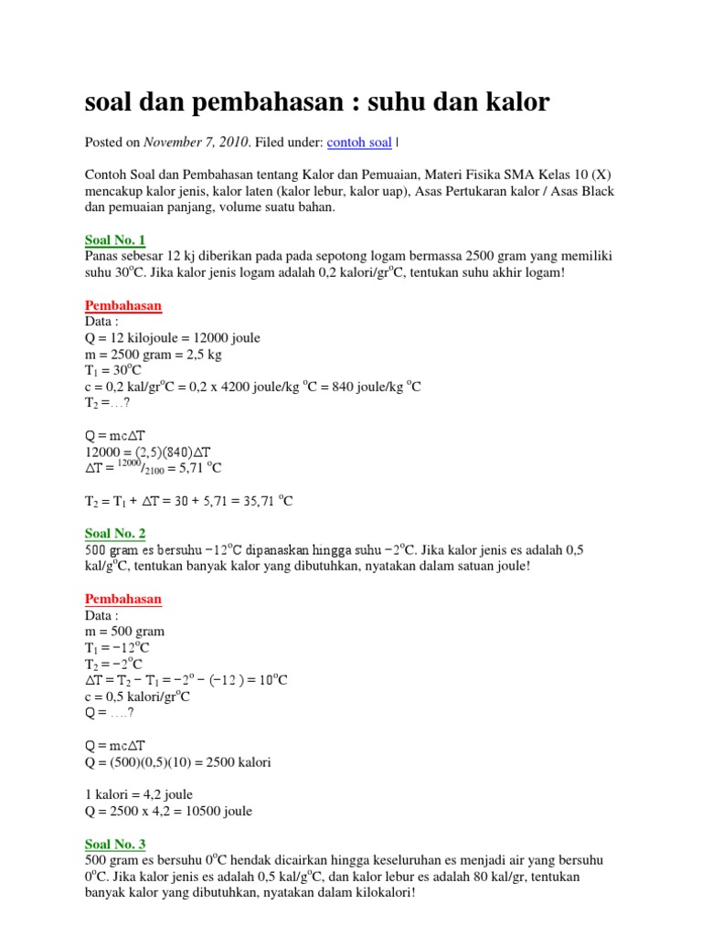 Soal Dan Pembahasan Suhu Dan Kalor
