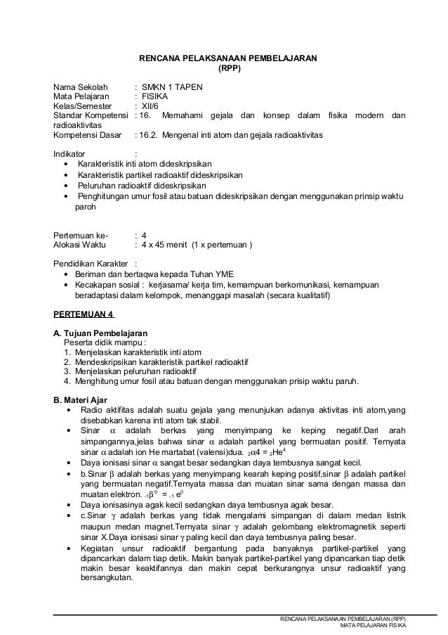 Lk 4 Fisika Modern Inti Atom Dan Radioaktivitas Kelas Profesional