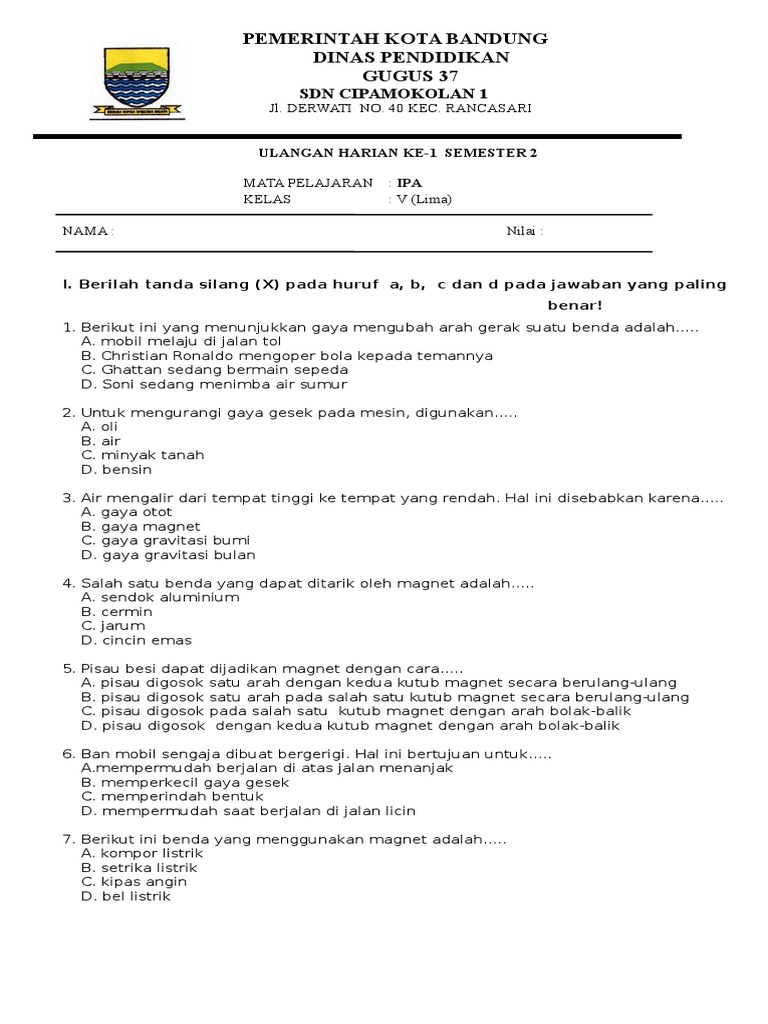 Soal Ipa Kelas 5 Tentang Gaya Bank Soal