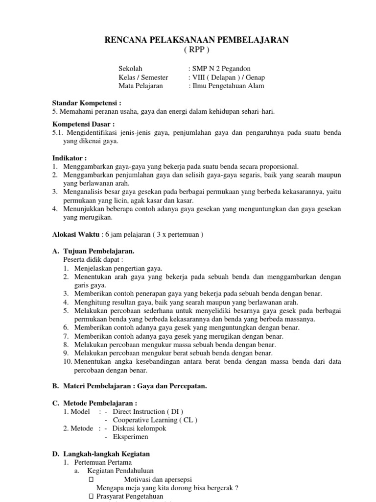 Rpp ipa kelas 5 sd. Soal ulangan tengah semester uas mata pelajaran. Gaya terbagi menjadi tiga macam yaitu gaya magnet gaya gravitasi dan gaya magnet.