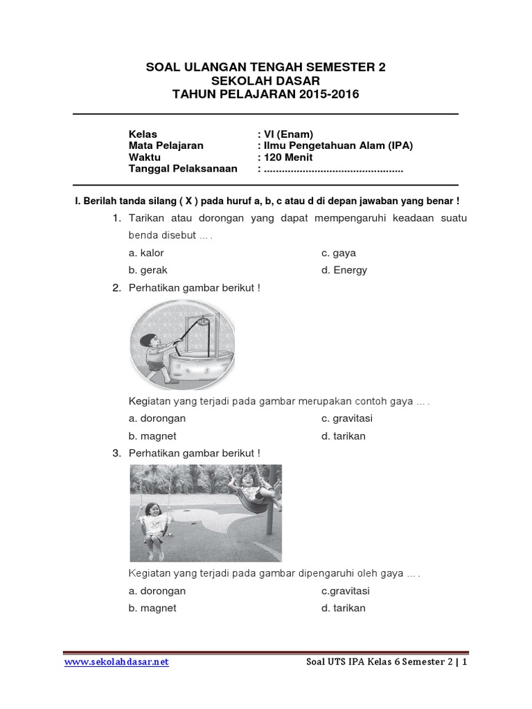 Soal Ipa Gaya Sem 2 Kls 6 2015