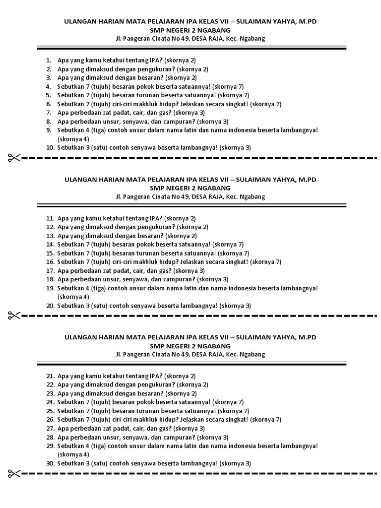 Kisi Kisi Soal Pas Uas Ipa Kelas 7 8 9 Ktsp Tahun 2018 2019 Cah
