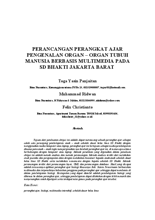 Perancangan Perangkat Ajar Pengenalan Organ Organ Tubuh Manusia