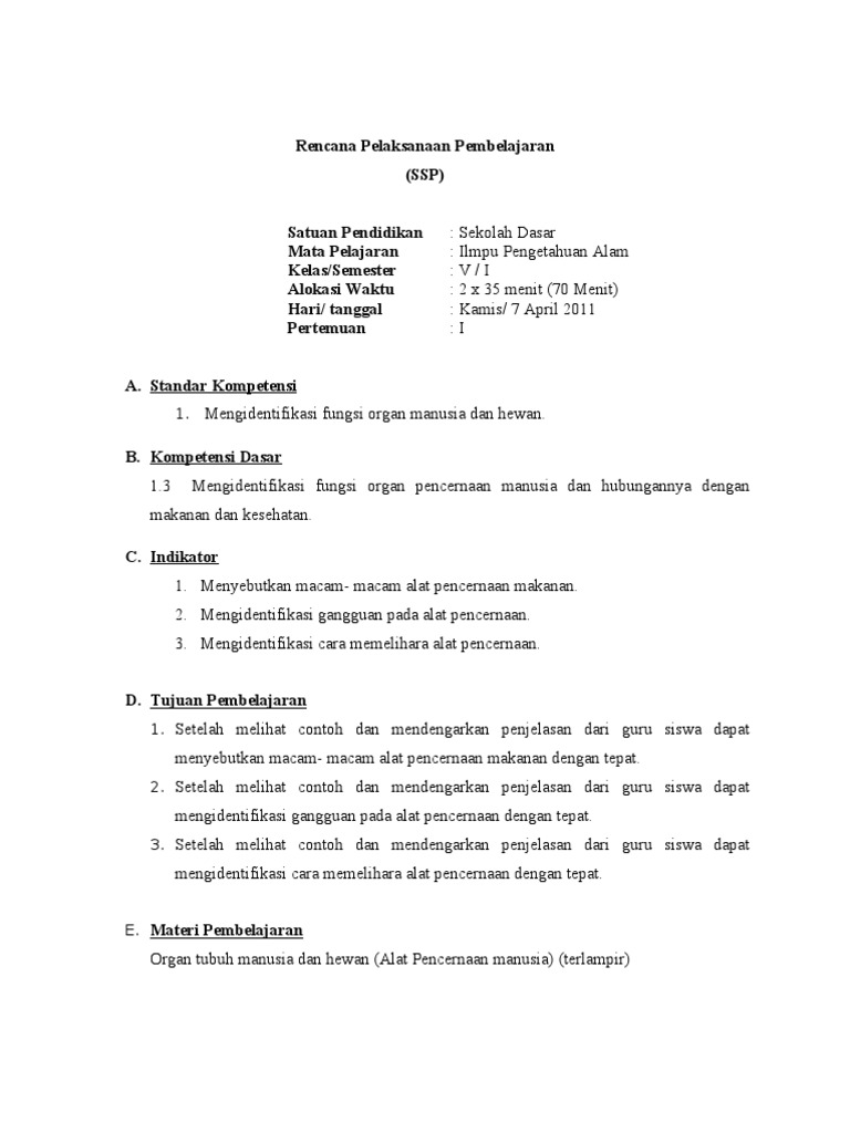 Rpp Ipa Kls 5 Pencernaan Manusia