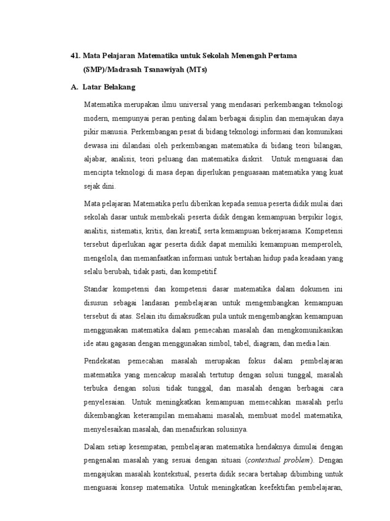 Standar Kompetensi Dan Kompetensi Dasar Matematika Smp